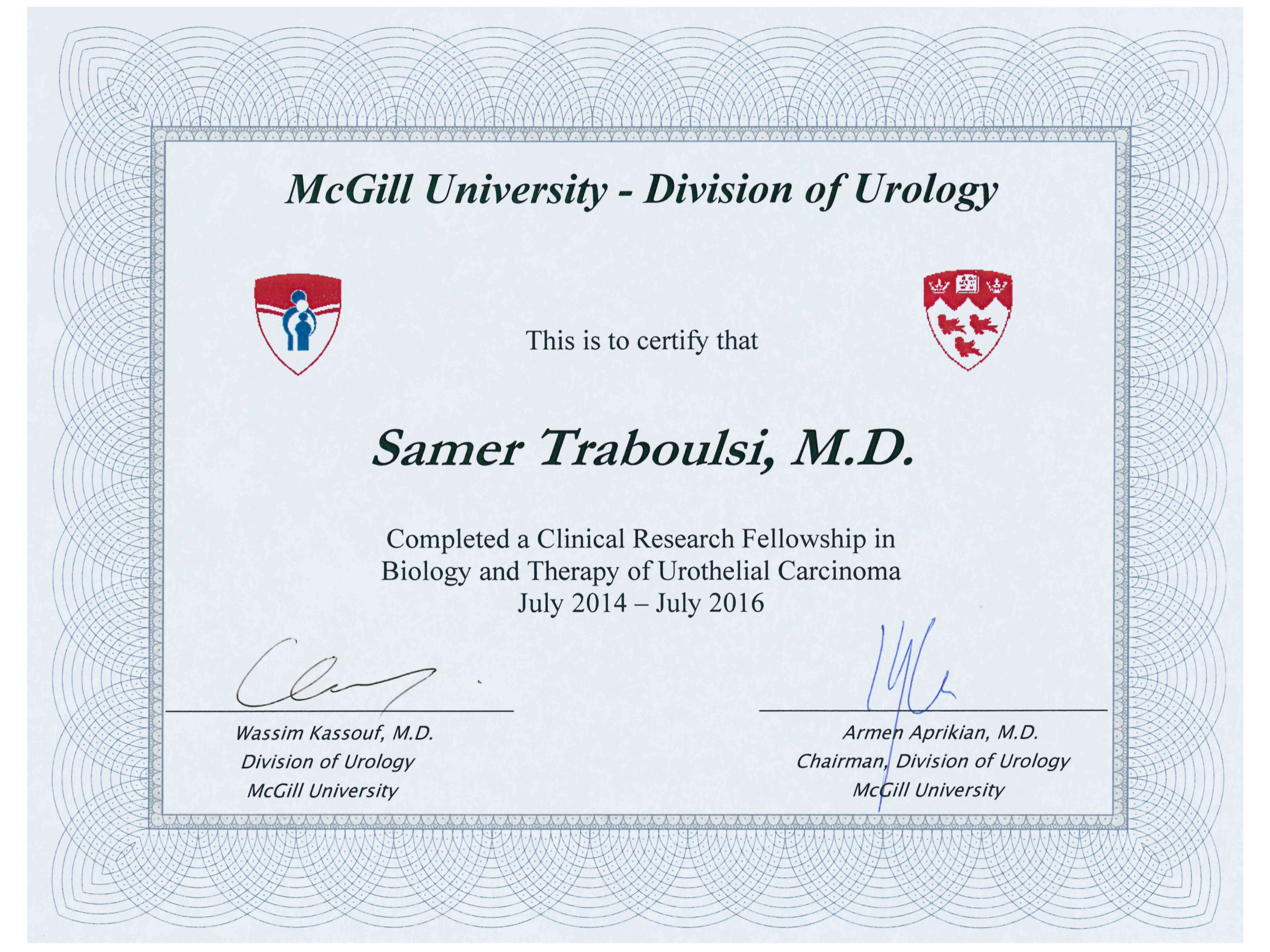 Dr. Samer Traboulsi is an accomplished urologist and researcher with more than 19 peer-reviewed scientific publications and two book chapters in the field of urology. His research focuses on urologic oncology, minimally invasive and robotic surgery, and advanced management of prostate, bladder, and urethral cancers.